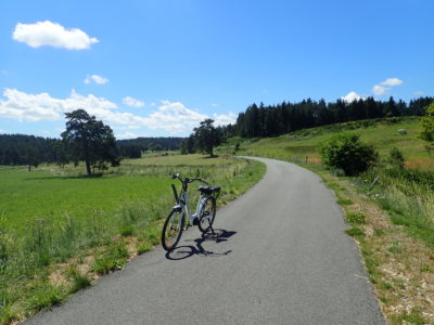 A la sortie de la Gare, je croise quelques marcheurs et cyclistes et me retrouve dans la campagne. Et voici la première petite côte, l’occasion de tester les performances de l’assistance électrique. C’est parti, vitesse 3 puis 4 et même 5, quelques coups de pédale et je grimpe sans aucune difficulté, l’effort est vraiment minime pour moi qui ne suis pas une grande sportive. Je trouve vite mon rythme de croisière et avance à 25 km/heure au milieu de la nature. Je vous dirai, on y prend vite goût à l’assistance électrique!