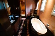 - Chambre Les Mille et une nuits : 1 lit double électrique (1x160x190 cm), un lit simple (90x190 cm); grande salle de bains privative et attenante (baignoire, vasques, douche pouvant communiquer avec la chambre La Belle au bois dormant, WC, sèche-cheveux, sèche-serviettes, ...) et un lit d'appoint enfant.