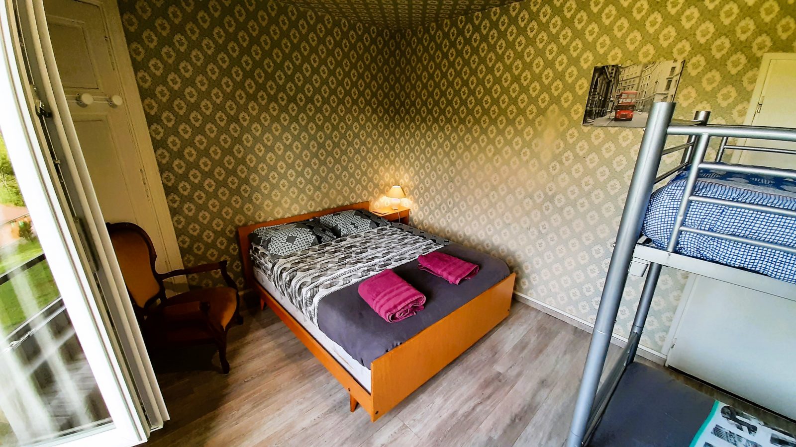 - Une chambre quadruple (1 lit 2 pers. en 140x190 cm et 2 lits 1 pers. superposés en 90x190 cm). Placards muraux dans chaque chambre.