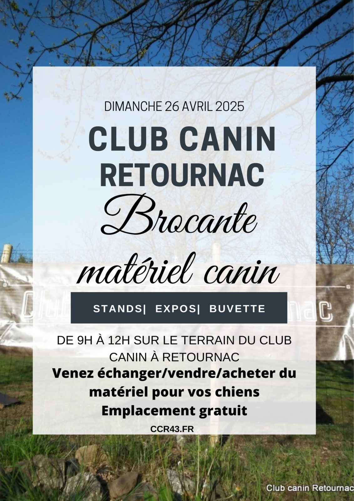 Venez échanger, vendre ou acheter du matériel pour vos chiens lors de cette brocante organisée par le Club Canin Retournac. Stands, expos et buvette sur place. Emplacement gratuit.
