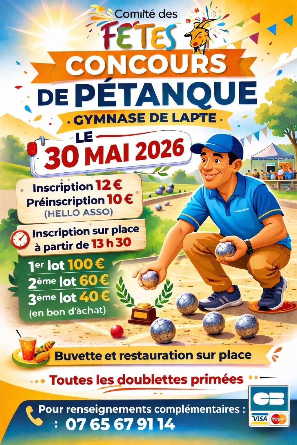 Inscription sur place à partir de 13h30 - Toutes les doublettes seront primées - Buvette et restauration sur place.