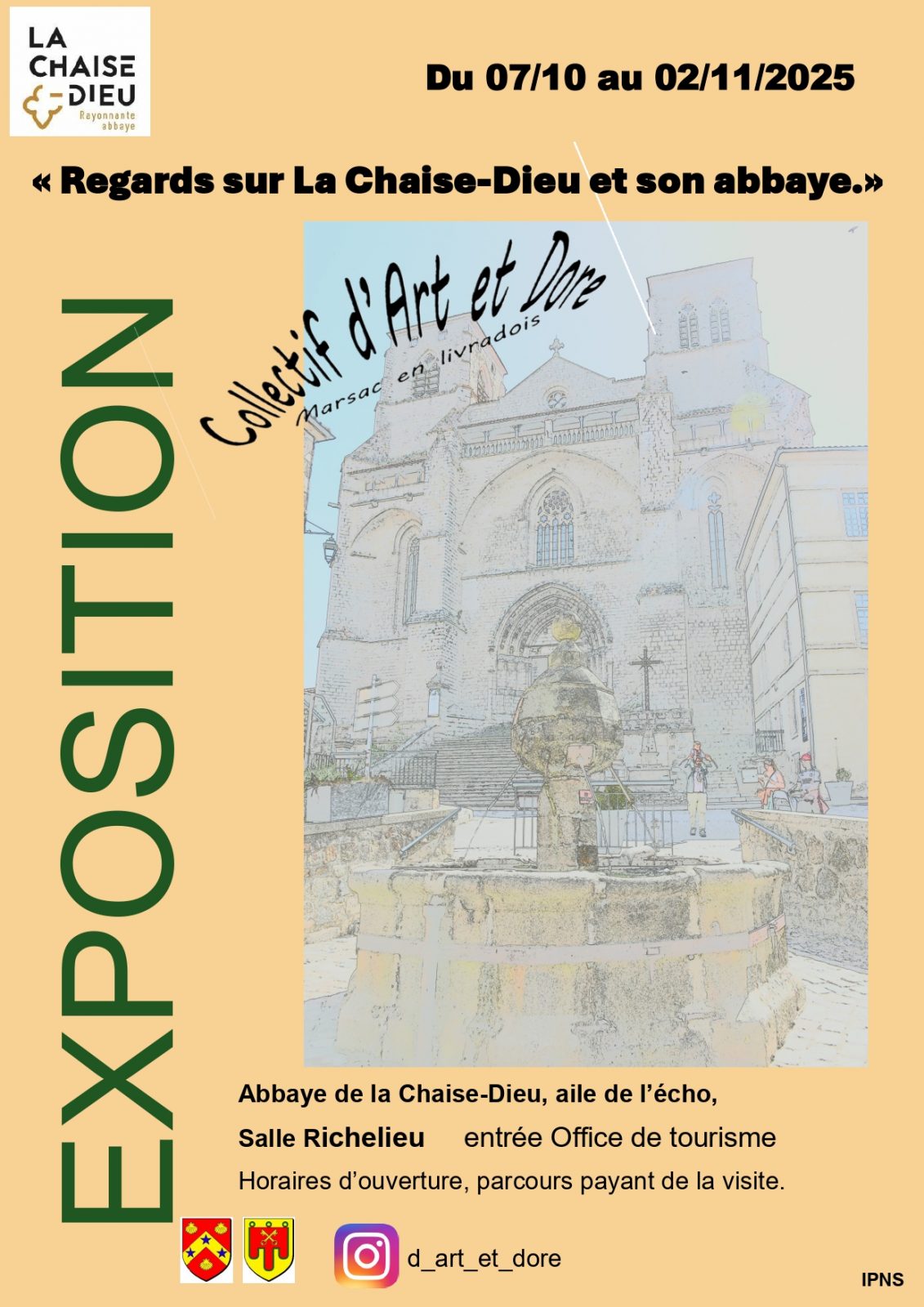 L'Abbaye de la Chaise-Dieu et son village vus à travers le regard du collectif D'Art et Dore. Une cinquantaine d’œuvres : photographies, aquarelles, acryliques, huiles, pastels, encres, pointes fines rayonnent au sein de cette très belle exposition