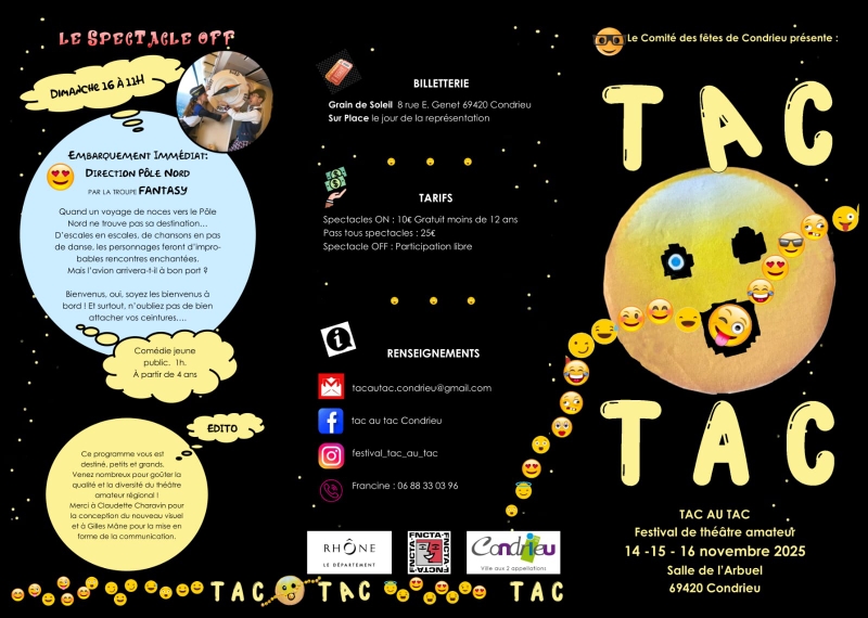 Festival de théâtre amateur Tac Au Tac, présenté par le comité des Fêtes de Condrieu.