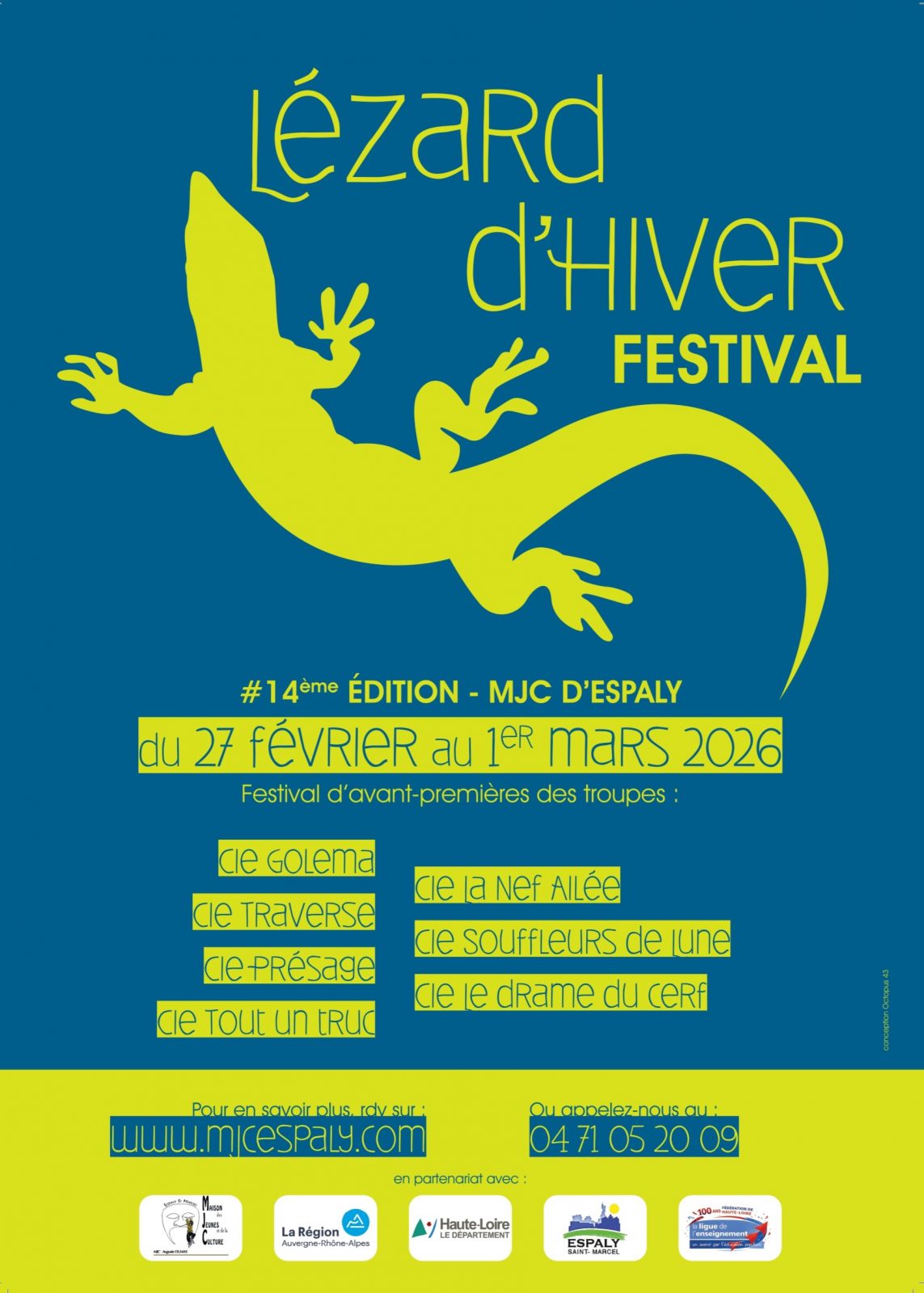 Le Lézard d’Hiver Festival revient pour sa 14e édition à la MJC d’Espaly du 27 février au 1er mars 2026. Un week-end d’avant-premières théâtrales avec plusieurs troupes invitées, placé sous le signe de la création et de la découverte.