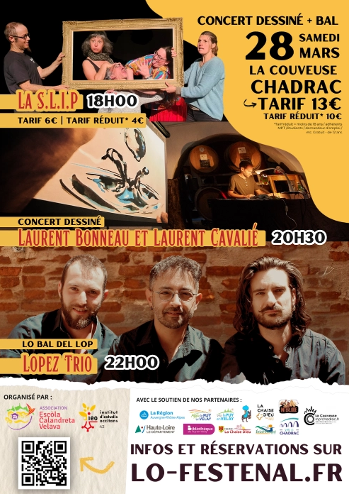 Lo Festenal : le festival des cultures occitanes (fèsta de las culturas occitanas) revient pour son huitième printemps à la Maison Pour Tous de Chadrac. Une journée riche avec ateliers, spectacles et une soirée concert dessiné et bal !