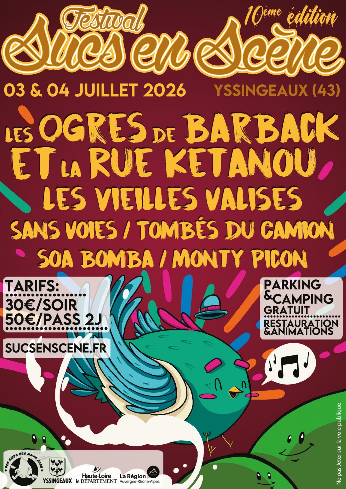 C’est reparti pour un tour les petits sucs !!! Le festival Sucs en Scène revient pour une édition historique : 10 ANS DE FÊTE, 10 ANS DE MUSIQUE, 10 ANS DE SOUVENIRS PARTAGÉS !