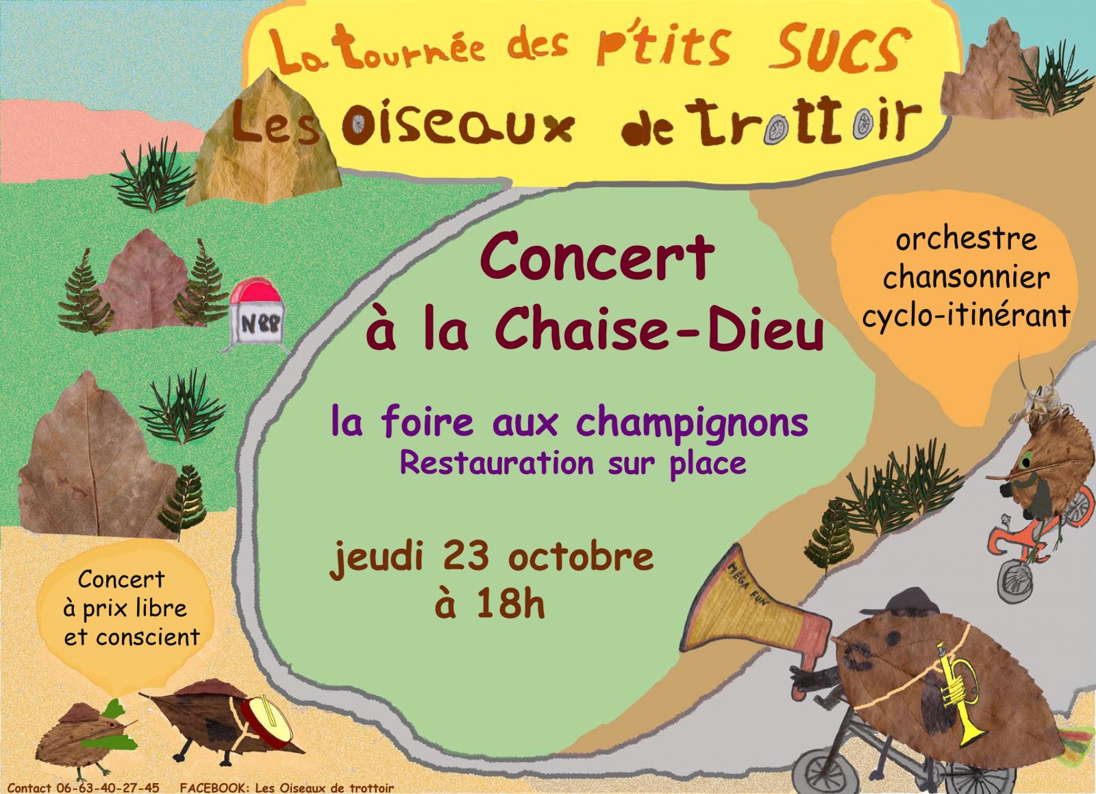 Traditionnelle foire aux champignons dès 7h : achat et vente de champignons secs, grand marché. A 18h : omelette aux champignons et concert avec les musiciens des Oiseaux de trottoir