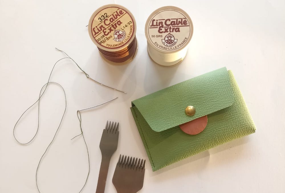 La couture sellier est réalisée avec un seul fil et deux aiguilles. Découvrez cette technique en réalisant votre propre porte-monnaie / porte-carte en cuir !