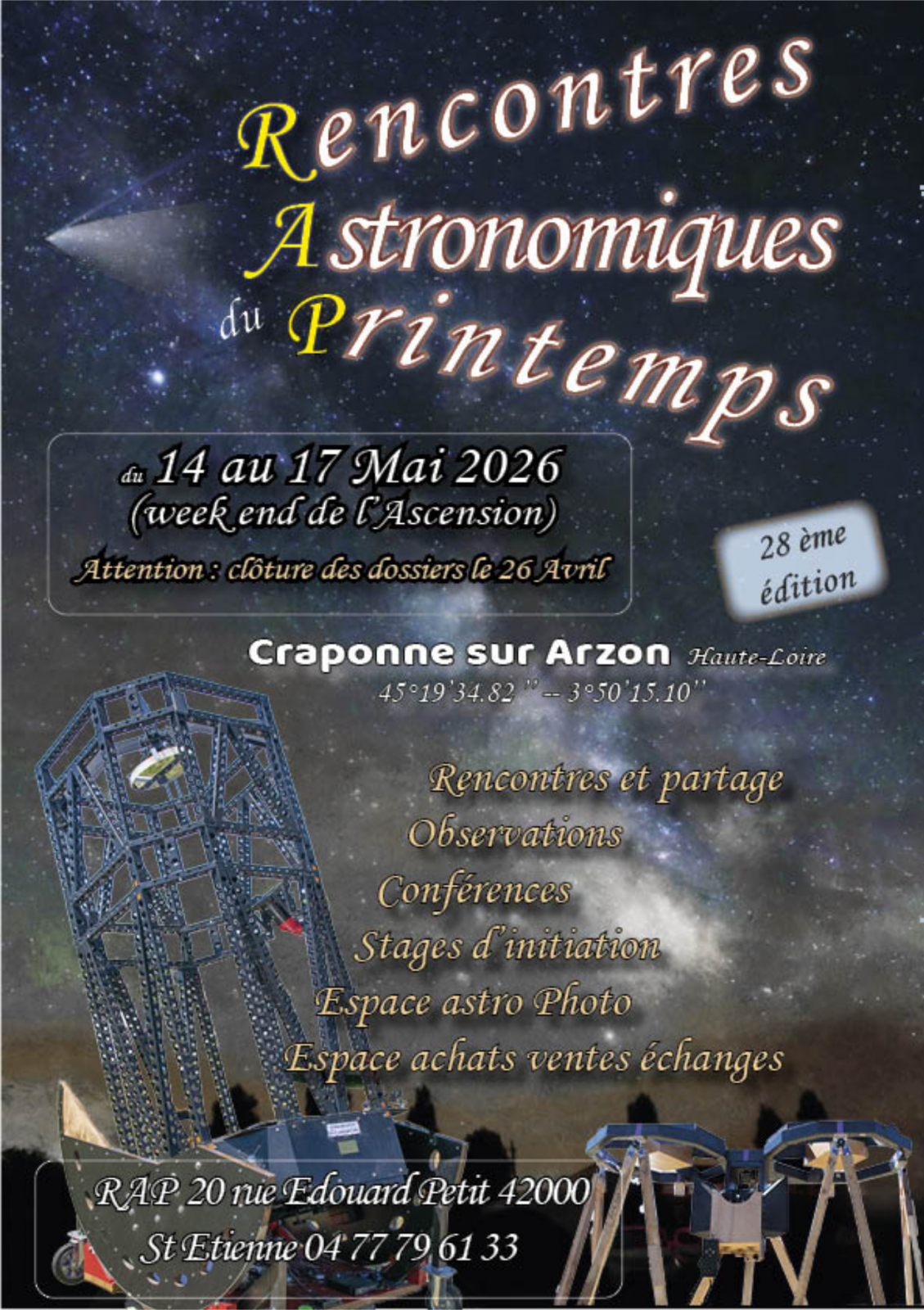 C’est à Craponne sur Arzon, en Haute Loire, loin des lumières des grandes villes (la ville éteint son éclairage pour l’occasion) que vous avez rendez-vous pour ces 28èmes rencontres.