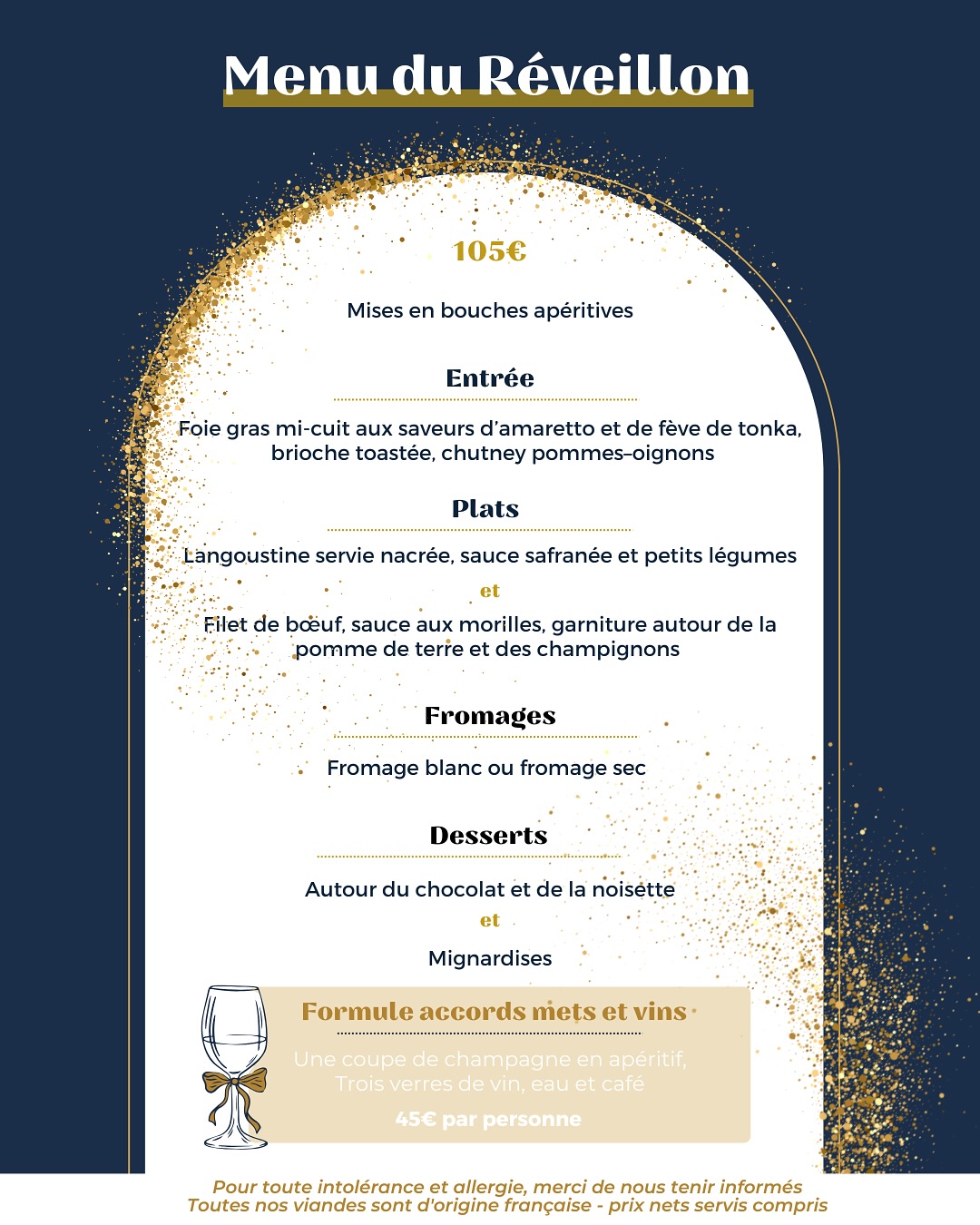 Le 31 décembre, savourez un dîner spécialement concocté pour l’occasion, pensé pour régaler vos papilles et accompagner cette soirée unique. Entre saveurs réconfortantes, moments partagés et atmosphère conviviale, tout est réuni pour commencer la nouvelle année du bon pied