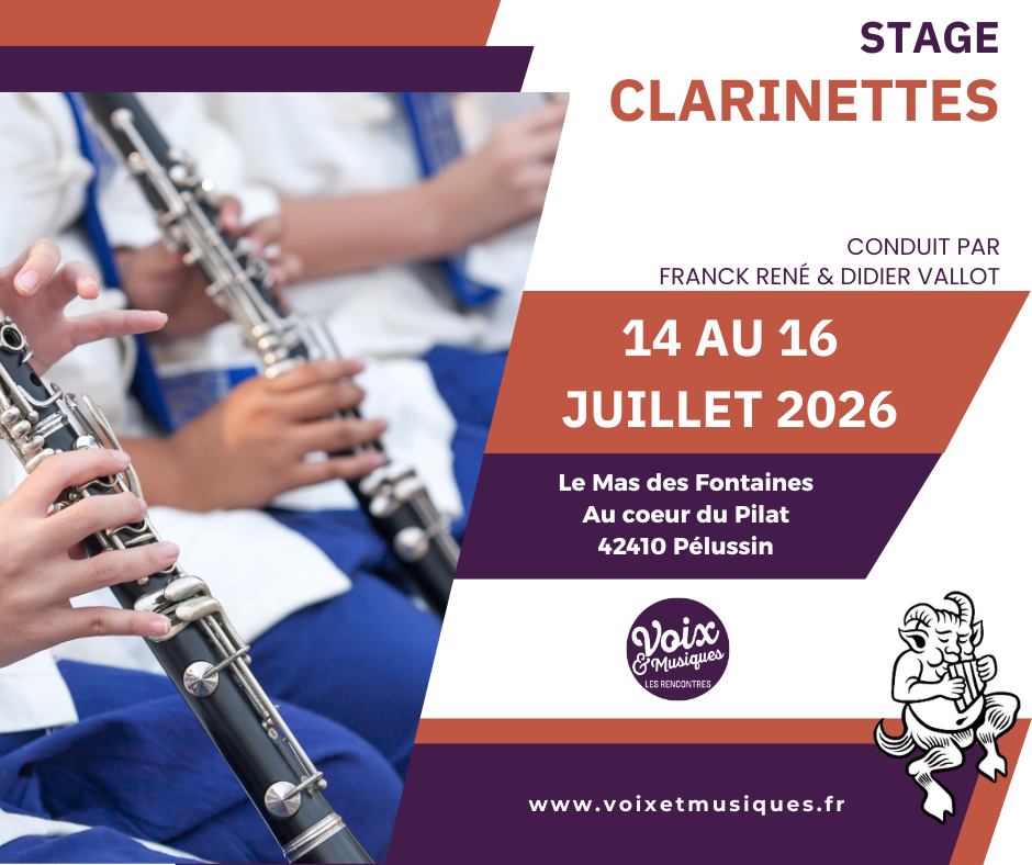 Ce stage Clarinettes, conduit par Franck René et Didier Vallot s’adresse aux clarinettistes, enfants ou adultes de tous niveaux.