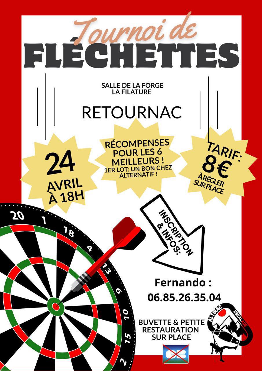 Participez au tournoi de fléchettes qui se tiendra à Retournac. Les 6 meilleurs joueurs seront récompensés, avec un bon chez Alternatif pour le premier lot. Une buvette et un service de petite restauration seront disponibles sur place pour agrémenter l'événement.