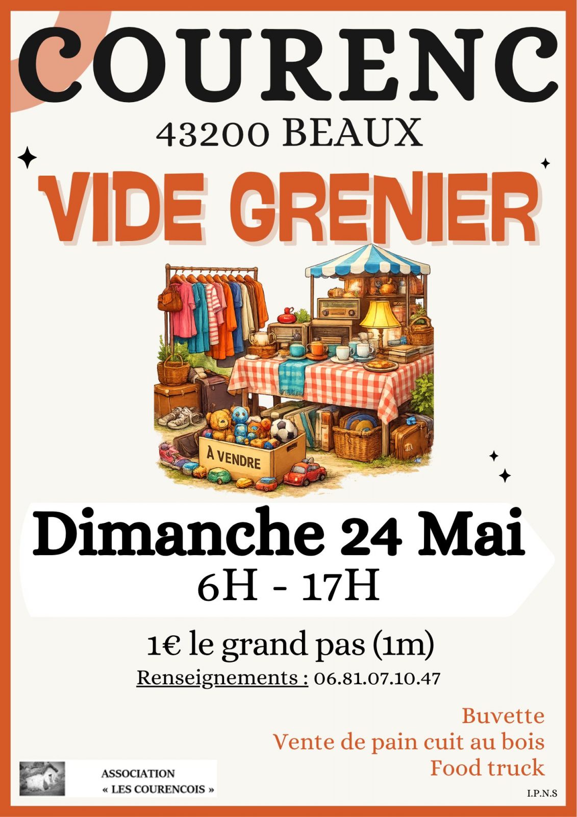 Vide grenier organisé par l'association "Les Courencois" avec buvette, vente de pain cuit au bois et food truck.
