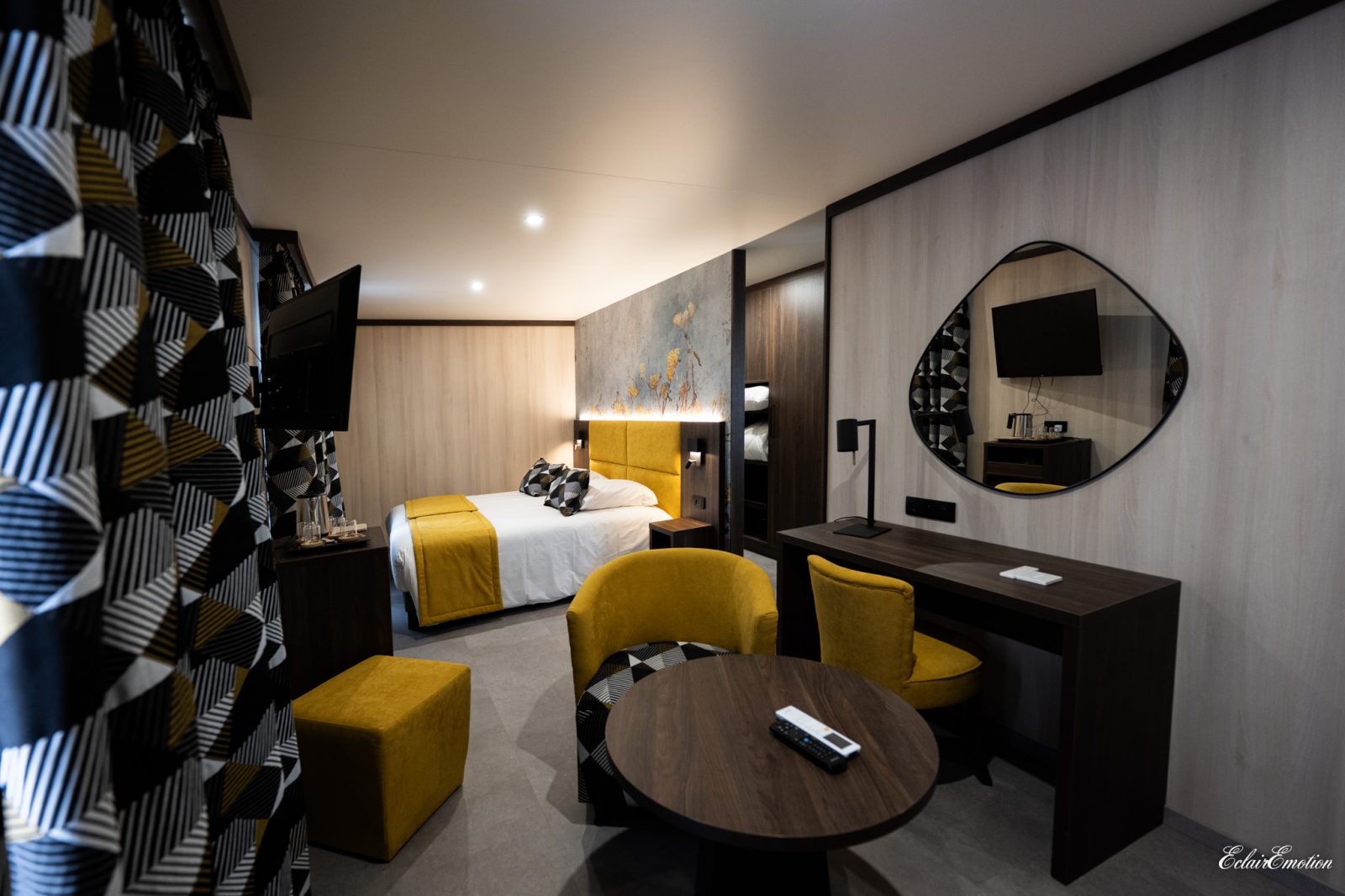 Des lodges haut de gamme pour un séjour unique en Haute-Loire. Chaque suite du Domaine In Secreto est un lodge privatif de 32 m², pensé pour allier confort moderne et immersion en pleine nature. Vous profitez d’un jacuzzi sur votre terrasse avec pergola bioclimatique, d’une vue imprenable sur le Mézenc et le Lizieux, ainsi que d’équipements haut de gamme : dressing double, salle de bains et toilettes séparées, mini-bar, coffre-fort, TV et plateau de courtoisie.