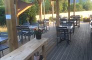 Un restaurant-pizzeria de 60 couverts "La Galoche" avec une belle terrasse en bois orientée plein sud,de plus de 200 m² où vous pourrez prendre vos repas, et petit déjeuner en toute quiétude.