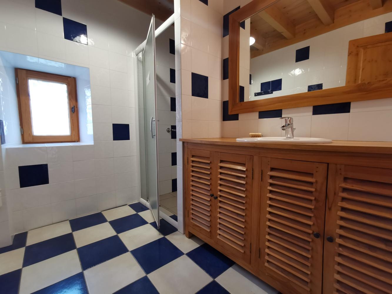 Au rez-de-chaussée de l'habitation, vous trouverez la cuisine à l'entrée, donnant sur une belle pièce de vie de 40m² avec salon, salle à manger (TV, poêle-cheminée). A disposition 2 chambres (1 lit 160, 1 lit 140), salle d'eau, wc.