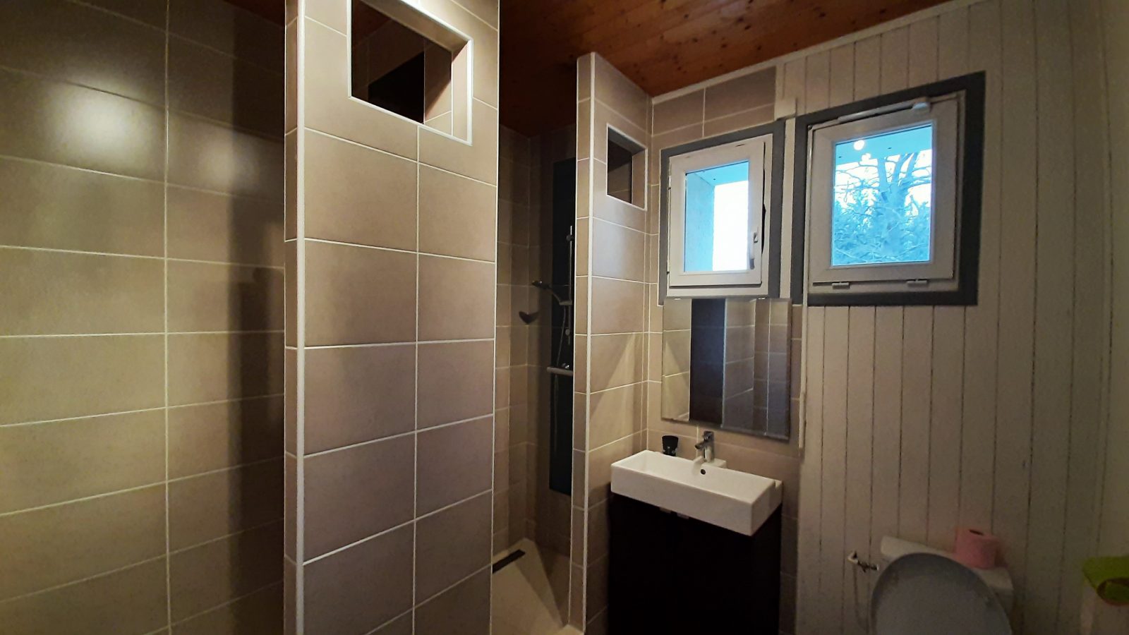 Rez-de-chaussée : cuisine équipée (table de cuisson avec 4 feux gaz, hotte aspirante, four encastré, four à micro-ondes, cafetières dont une Senseo, bouilloire, grille-pain, réfrigérateur, lave-linge, ...). Salon-salle à manger avec TV à écran plat, canapé-convertible, fauteuils, table basse, ... Salle d'eau (2 douches, vasque sur meuble et WC).